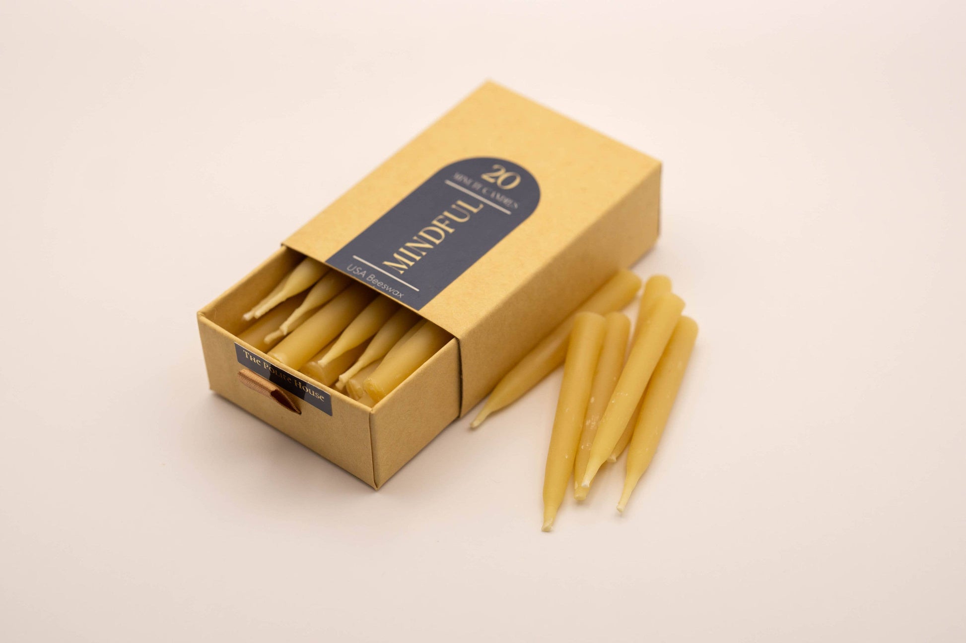 Refill Pack of 20 Minute Candles Set of 20 The perfect way to practice mindfulness and relaxation, these 20-minute candles are made from 100% USA beeswax and come in a set of 20. Each candle comes with a match, so all you need to do is light one and enjoy the calming atmosphere for up to 20 minutes.