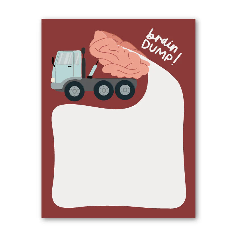 Because sometimes your brain is a chaotic mess and the only solution is to dump it all out. This 6x9 notepad features a brain-shaped dump truck (yep, really) and plenty of space to unload your mental clutter — to-dos, intrusive thoughts, random snack cravings, passive-aggressive email drafts… whatever’s clogging up your headspace.