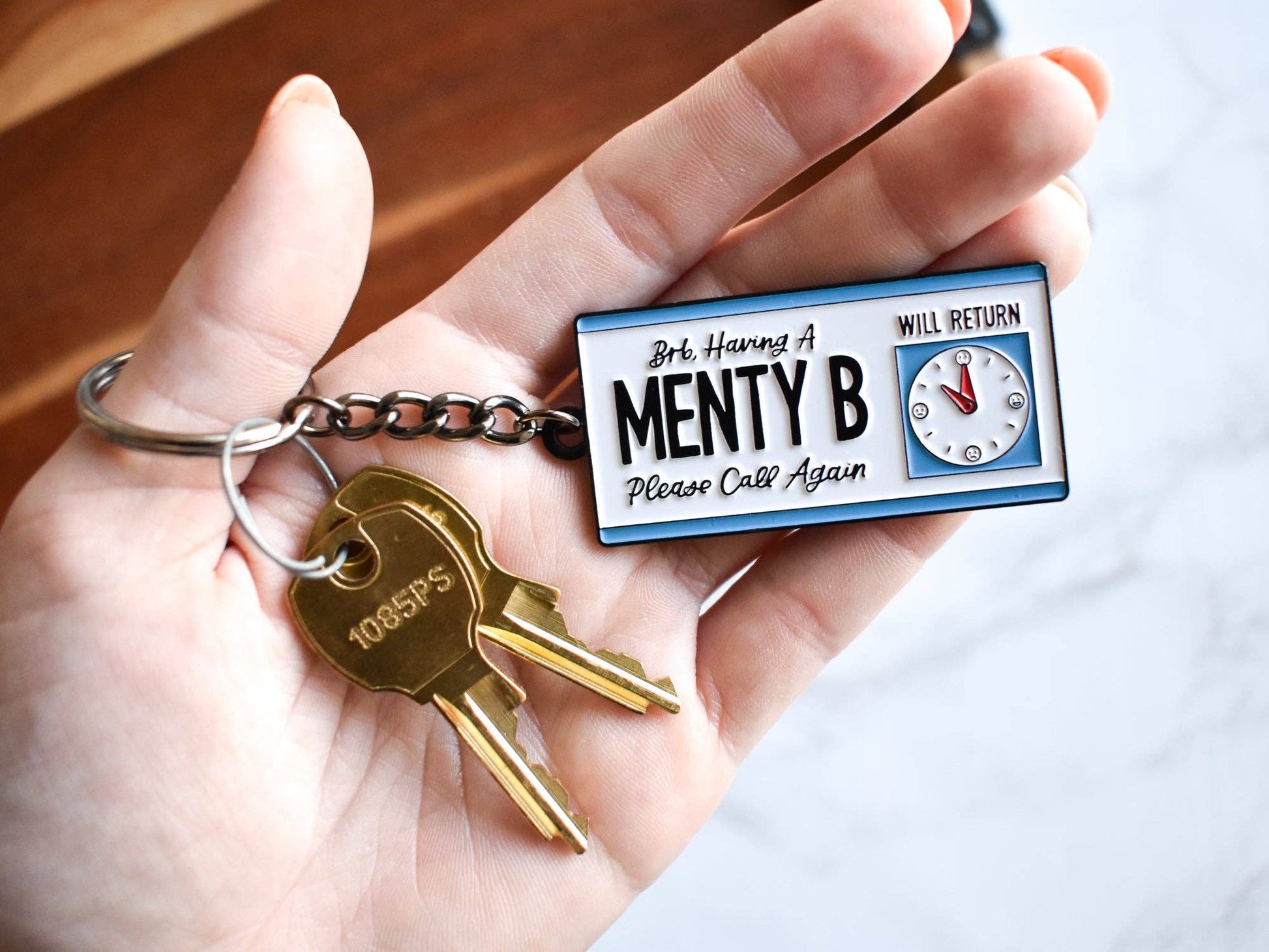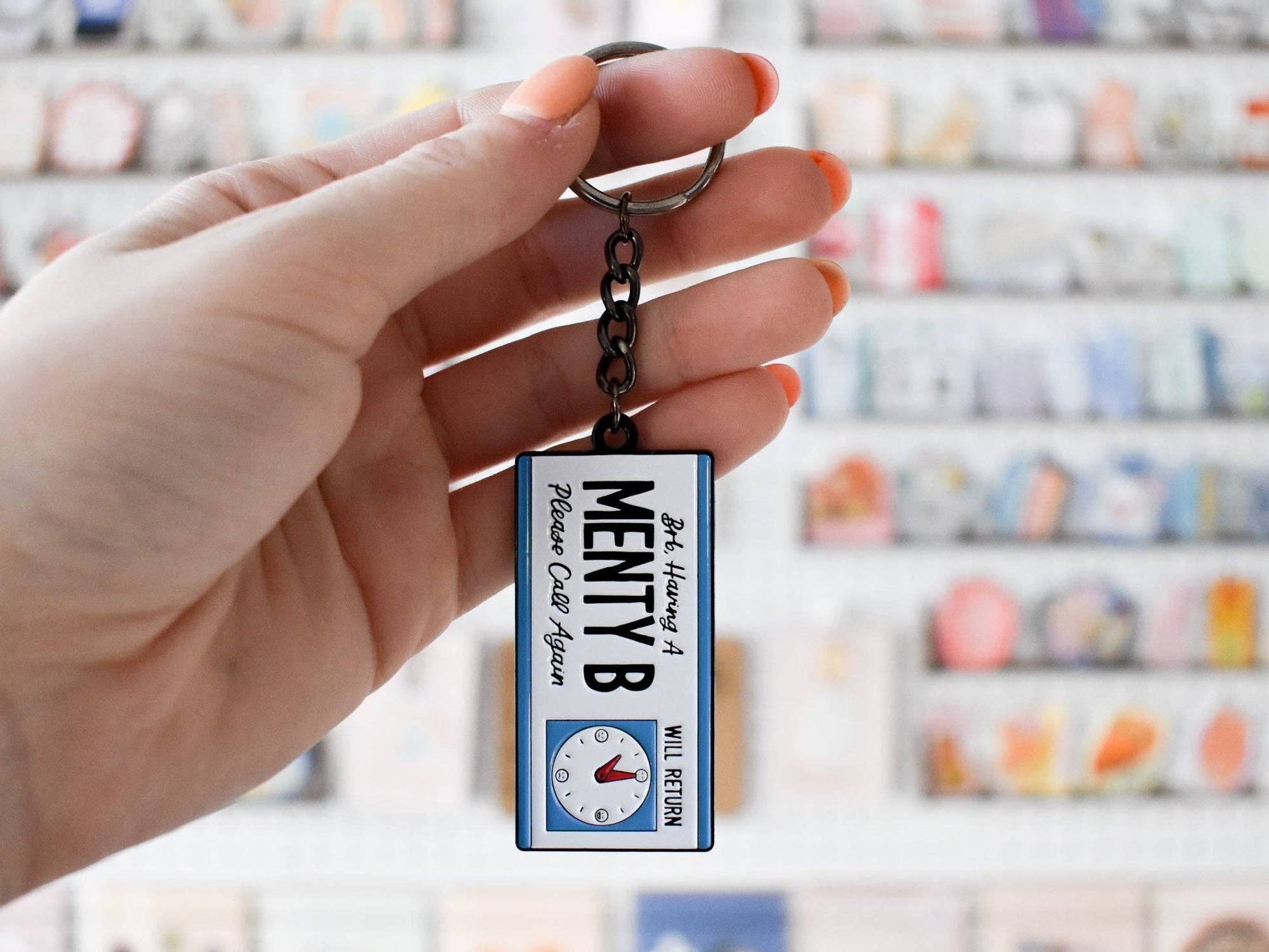 BRB, Having a Menty B Keychain
