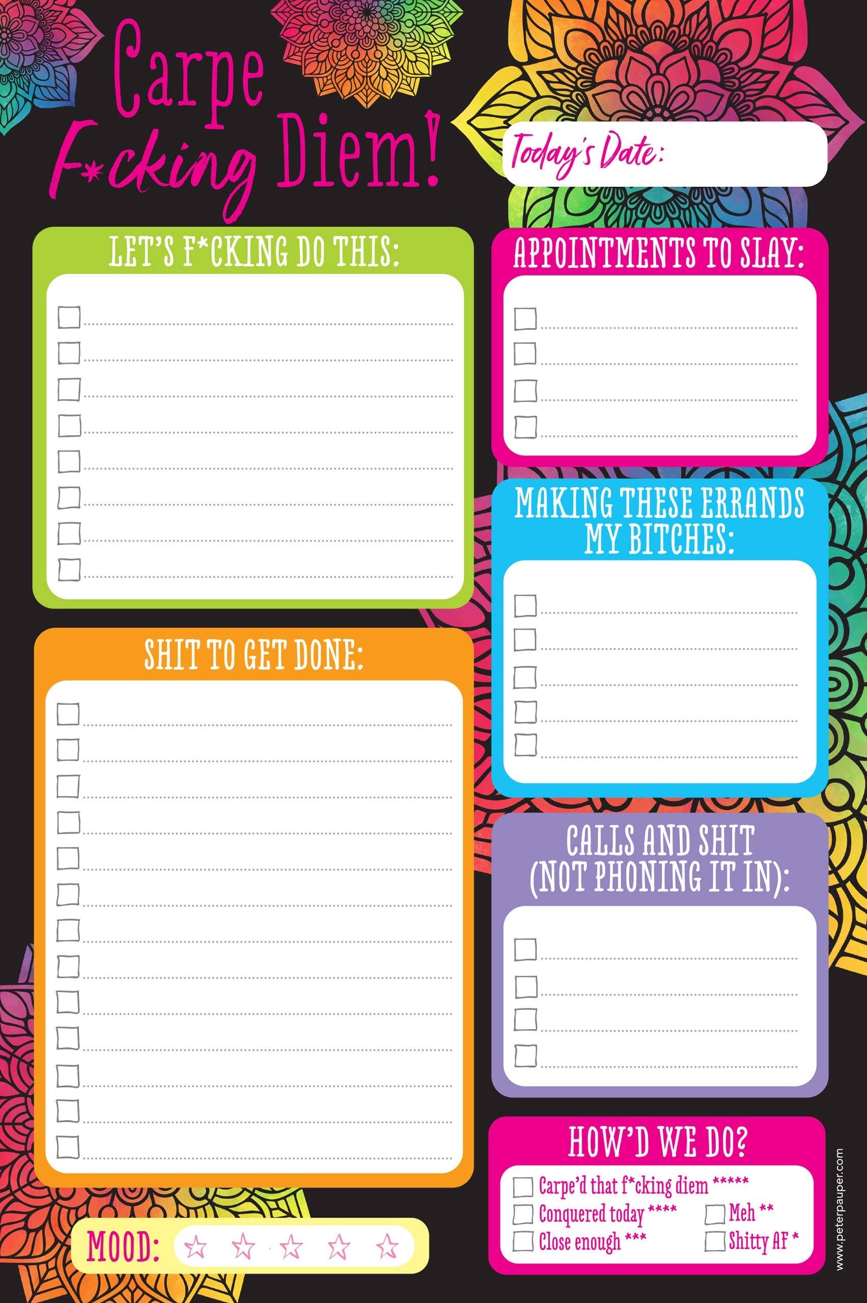 For the days when you need a little extra attitude with your to-do list. The Carpe F*cking Diem Notepad is here to remind you to grab life by the… well, you know. Jot down your must-do’s, want-to-do’s, and probably-should-do’s, then get out there and seize the day like the unstoppable force you are.