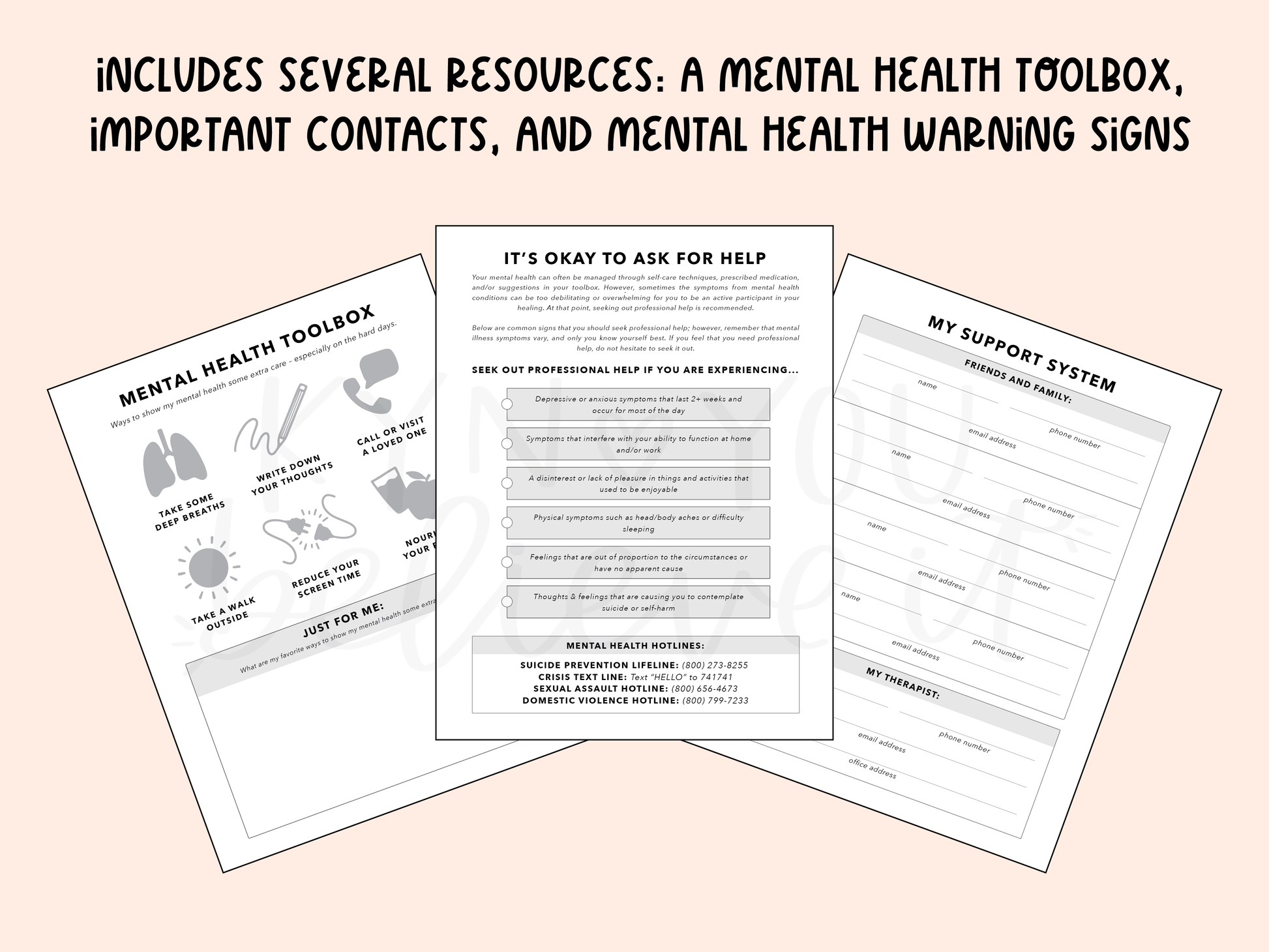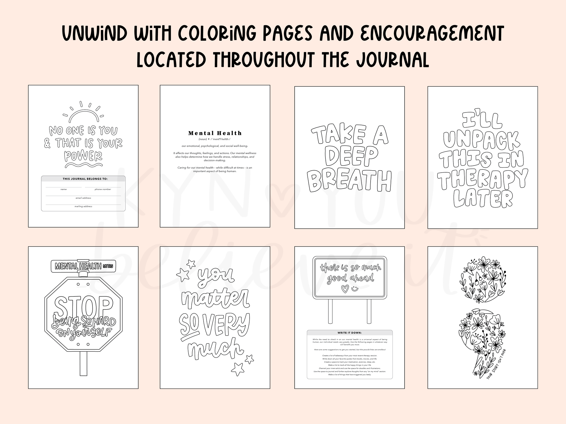 This journal will be the perfect guide for checking in on your mental health! With coloring pages and other unique items in the front, it will be the perfect resource in your path to healing.