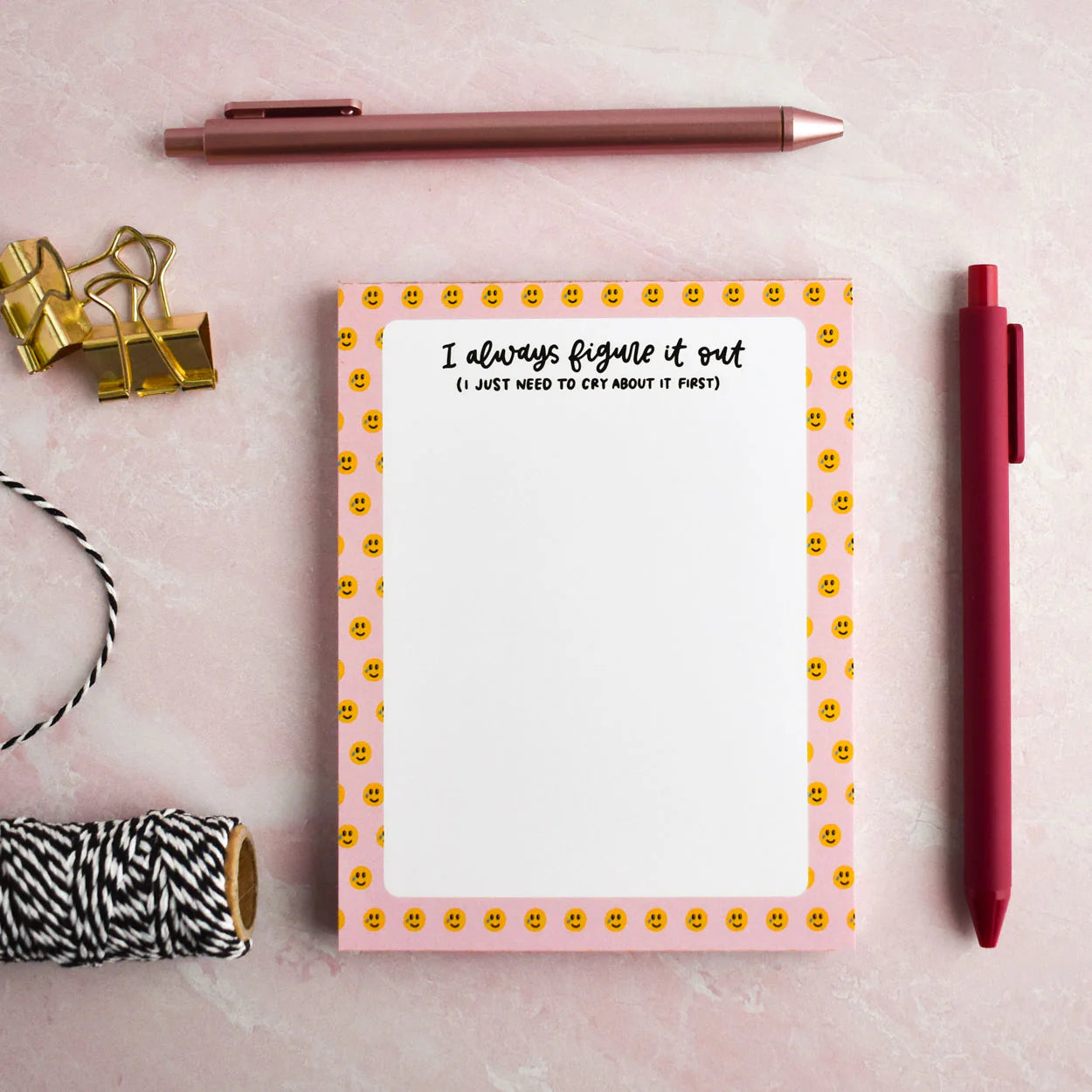 Life’s messy, and sometimes all you can do is cry a little and then keep going. Enter the Figure It Out notepad — your trusty sidekick for brain dumps, to-dos, and those “I swear I’ll get this done” moments. Plenty of blank space to scribble your chaos, plan your next move, or just vent silently to the paper.