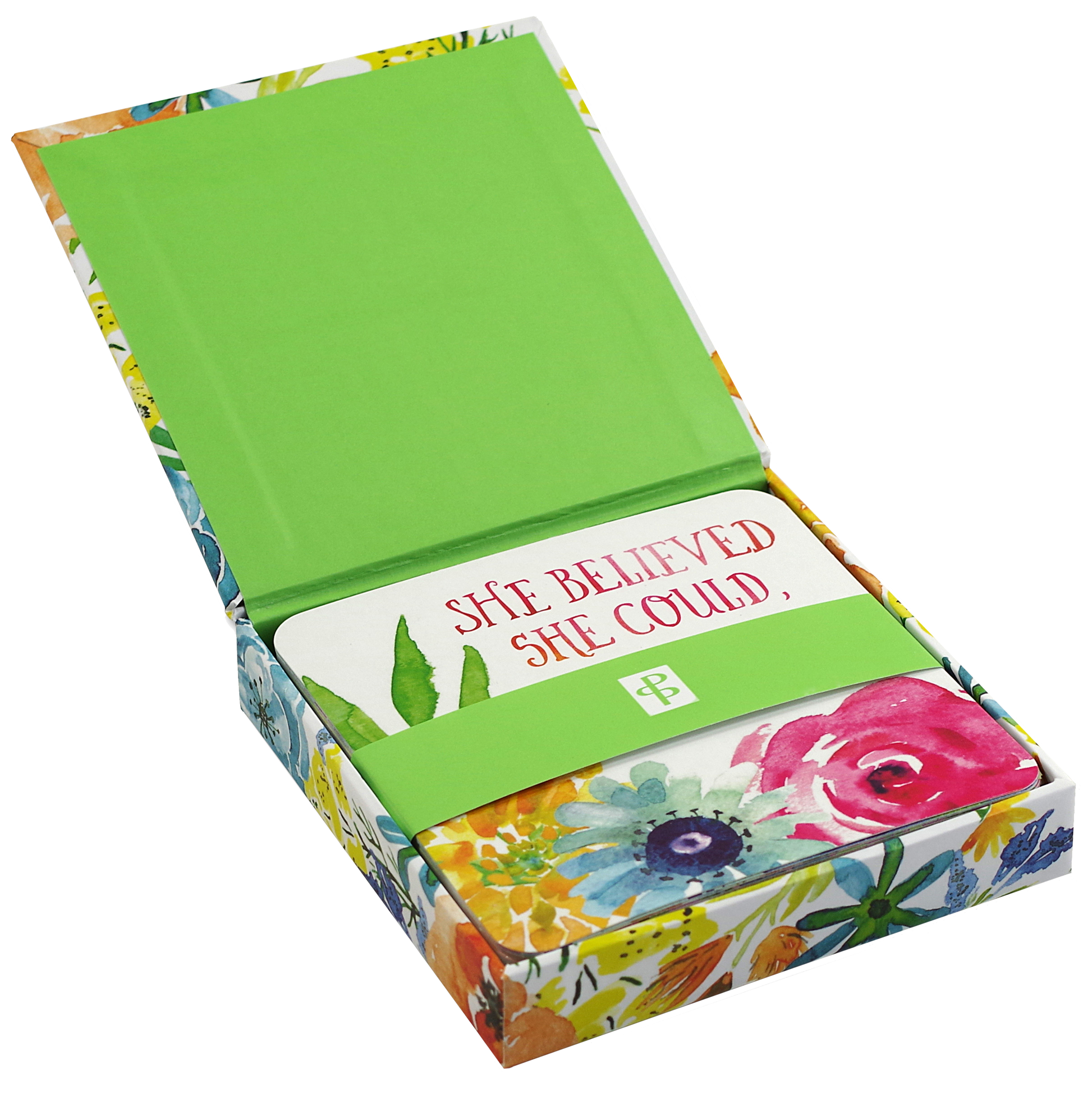 Let this deck of beautiful, affirming quotation cards uplift you as you go about each day! Cards includes quotations from doers and thinkers from all walks of life: Elizabeth Gilbert, Malala Yousafzai, Vincent van Gogh, George Lucas, and many more. Select a card, make its message your theme, and see what you can accomplish! Share with family, friends, clients, and colleagues to spread the positivity. 50 cards per deck. Gorgeous full-color designs. Quality coated card stock. Rounded corners for reduced wear. Boxed set is perfect for gift-giving! Cards measure 4'' square. Box measures 4-1/4'' square x 7/8'' deep.